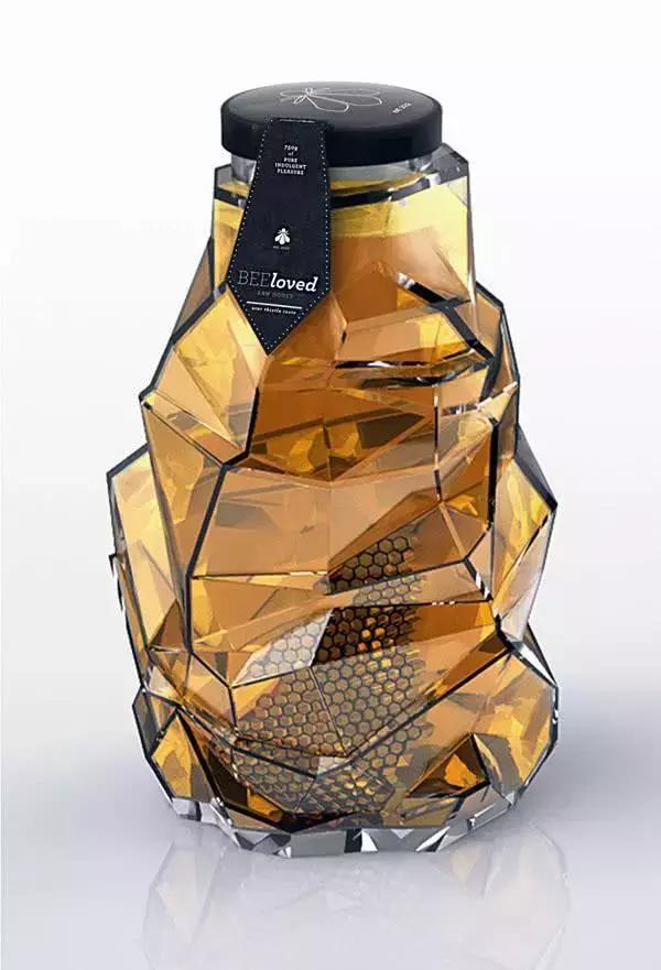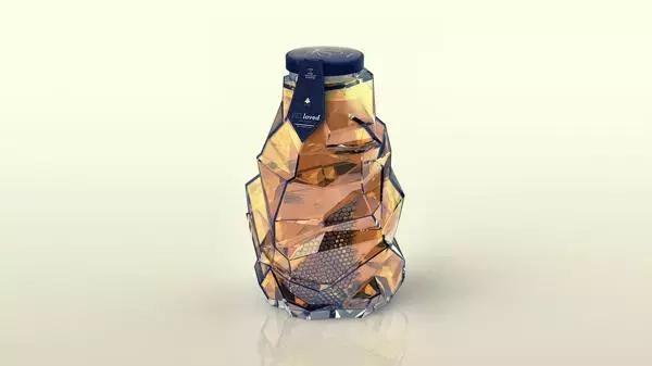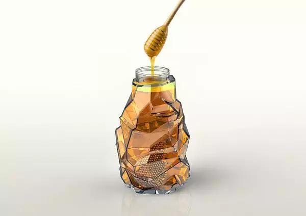 不規(guī)則的切割面組合在一起,充分利用了光線的折射原理,使整個蜂蜜瓶體看起來通透無比,瓶子里的蜂蜜仿佛閃耀著溫暖的光芒。