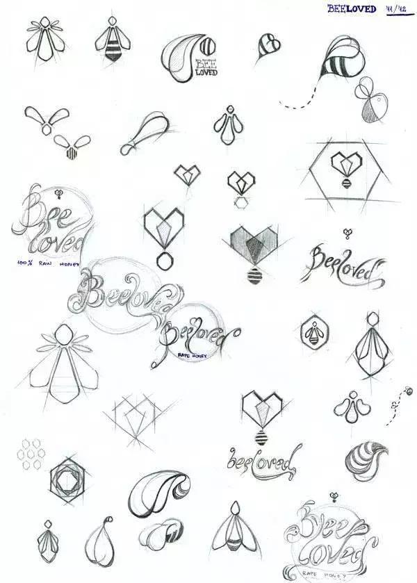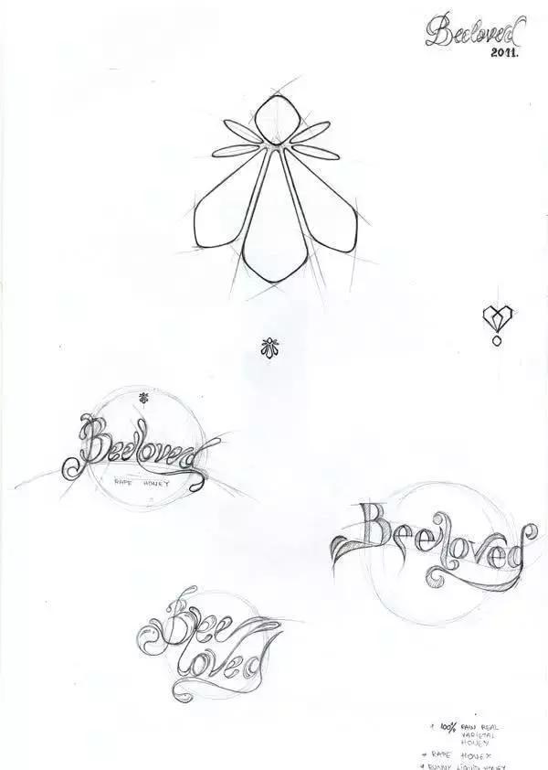 標(biāo)志設(shè)計與字體設(shè)計手稿,筆峰處的打磨最能體現(xiàn)設(shè)計靈光的閃現(xiàn)。