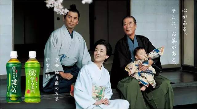 伊右衛(wèi)門茶飲料的身影幾乎每年都會(huì)出現(xiàn)在日本包裝設(shè)計(jì)大獎(jiǎng)上。它的來(lái)頭頗大,是日本的百年老字號(hào)茶莊福壽堂和三得利聯(lián)合推出的茶品牌。標(biāo)榜來(lái)自古老京都的美好茶飲。你或許對(duì)他們的視頻廣告已經(jīng)很熟悉了,由久石讓配樂,本木雅弘和宮澤理惠扮演的“伊右衛(wèi)門”夫婦,春賞櫻、夏乘涼、秋觀月、冬踏雪,四季而變,溫情雅致。